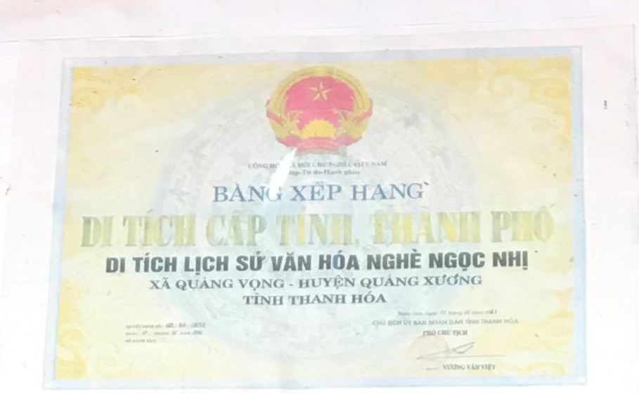 Theo sử sách ghi lại, Nghè Ngọc Nhị được khởi lập đầu thế kỷ thứ XI, vào những năm 1022 trên một diện tích 2104 m2, kiến trúc bề thế, oai nghiêm và linh thiêng. Song vào những năm 1950-1960 của thế kỷ trước, trải qua bao biến cố của lịch sử. Lúc đất nước còn chiến tranh, còn bị chia cắt đôi miền Nam Bắc, sự khắc nghiệt của thiên nhiên, bên cạnh đó là nhận thức còn ấu trĩ tả khuynh, vì vậy Nghè Ngọc Nhị đã bị tàn phá nặng nè. Mặc dù không còn nguyên vẹn như xưa, nhưng những gì còn lại là bằng cớ lịch sử chứng minh lịch sử, văn hóa, trí thông minh và tinh thần sáng tạo của người dân làng Ngọc Nhị trong quá trình dựng nước và giữ nước. Đó là những di sản văn hóa, lịch sử rất có giá trị cần được bảo tồn và phát huy. Trong những năm gần đây nguyện vọng trùng tu, khôi phục lại di tích Nghè Ngọc Nhị đã được nhiều thế hệ ấp ủ và thực hiện, vì vậy “lễ hội Nghè Ngọc Nhị” vẫn được diễn ra hằng năm trên nền đất xa xưa để níu gọi con cháu và bè bạn thập phương nhớ lại di tích lịch sử văn hóa này. Bên cạnh đó được sự quan tâm của các cấp ủy Đảng và chính quyền địa phương, Nghè Ngọc Nhị đã được Ủy ban nhân dân tỉnh Thanh Hóa cấp giấy chứng nhận di tích lịch sử văn hóa Nghè Ngọc Nhị Theo quyết định số: 186-QĐ/UBTH ngày 17 thánh 01 năm 2011. Chính vì vậy càng làm tôn thêm giá trị văn hóa và sự linh thiêng của di tích Nghè Ngọc Nhị.