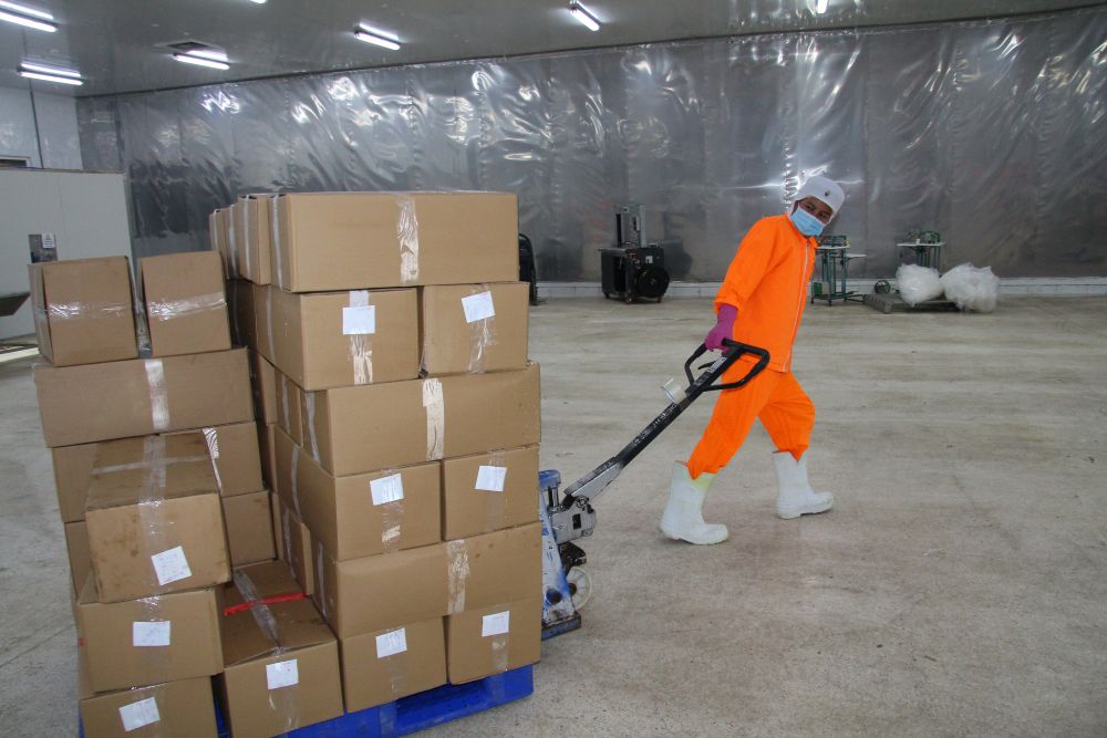 Chuẩn bị chân hàng để xuất khẩu. Ảnh Trọng Triết
