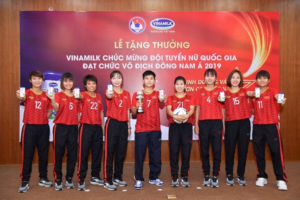 Tại buổi lễ chúc mừng Đội tuyển nữ quốc gia Việt Nam đạt chức vô địch Đông Nam Á 2019, với vai trò là nhà tài trợ chính, Vinamilk đã tặng thưởng cho Đội tuyển 500 triệu tiền mặt và 500 triệu đồng quà tặng là những sản phẩm dinh dưỡng Vinamilk dành riêng cho các thành viên đội tuyển. Ngoài ra, Vinamilk còn dành tặng thêm một chuyến tham quan Trang trại Vinamilk Organic tại Đà Lạt cho đội tuyển như một món quà đặc biệt giúp các tuyển thủ và ban huấn luyện có được khoảng thời gian nghỉ ngơi với những trải nghiệm mới mẻ sau một hành trình thi đấu nhiều áp lực.