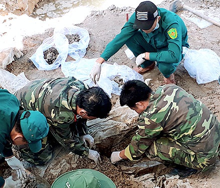 | Công tác tìm kiếm, cất bốc hài cốt liệt sĩ được tiến hành cẩn thận và chu đáo |