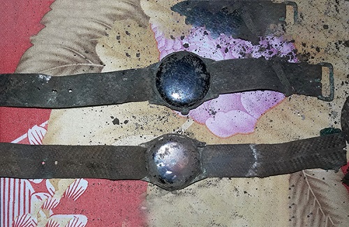 | 2 chiếc đồng hồ được tìm thấy cùng với các hài cốt liệt sĩ tại ấp 8, xã Bàu Cạn (huyện Long Thành) |