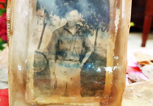 | Ảnh chân dung người lính còn nguyên vẹn được tìm thấy ở hố chôn. Ảnh: N. An. |
