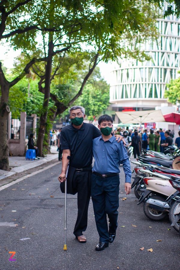Mặc dù gặp nhiều khó khăn trong đi lại vì hậu quả bom đạn từ chiến tranh, ông Đoàn Tấn Phụ (67 tuổi, Quảng Ngãi) vẫn cố gắng ra Hà Nội để hòa cùng dòng người vào viếng Tổng Bí thư Nguyễn Phú Trọng.