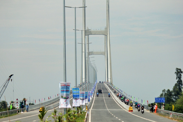 Các phương tiện đầu tiên lưu thông trên cây cầu Cao Lãnh (Ảnh: Nguồn Internet)