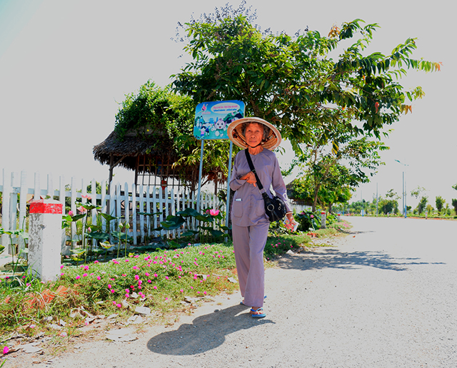 Dù ngày nắng cũng như ngày mưa, bà Bảy đi khắp xóm bán từng tờ vé số để có tiền mua thêm hoa, cây cảnh trồng cho nghĩa trang thêm đẹp