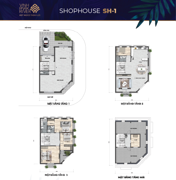 Đơn cử như với dòng sản phẩm shophouse, thiết kế 3 tầng 1 tum được sắp đặt các không gian rất hợp lý. Tầng 1 vừa có thể khai thác kinh doanh mặt tiền trước, nơi giáp với trục đường quốc lộ, vừa đáp ứng không gian sống riêng dành cho gia chủ với mặt tiền sau, nơi giáp với đường nội khu 9m. Tầng 2 được thiết kế thành 1 phòng ngủ cùng không gian phòng bếp, phòng khách. Trong khi đó, tầng 3 ngoài thiết kế 3 phòng ngủ còn sở hữu không gian sinh hoạt chung lớn dành cho cả gia đình.