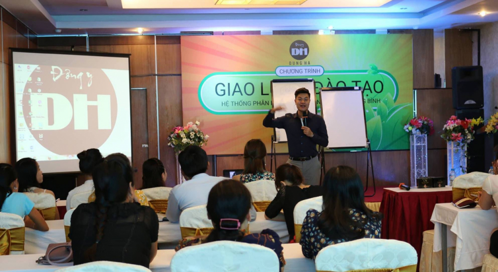 | Ông Nguyễn Khắc Trường trong một chương trình đào tạo "đỉnh cao" do Công ty Đông y Dung Hà và Công ty Dược phẩm Doctor A tổ chức. |