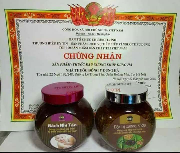 Thế nhưng, hiện tại Bộ Y tế chưa cấp giấy chứng nhận nào cho sản phẩm có tên “Thuốc xoa bóp xương khớp Dung Hà”.