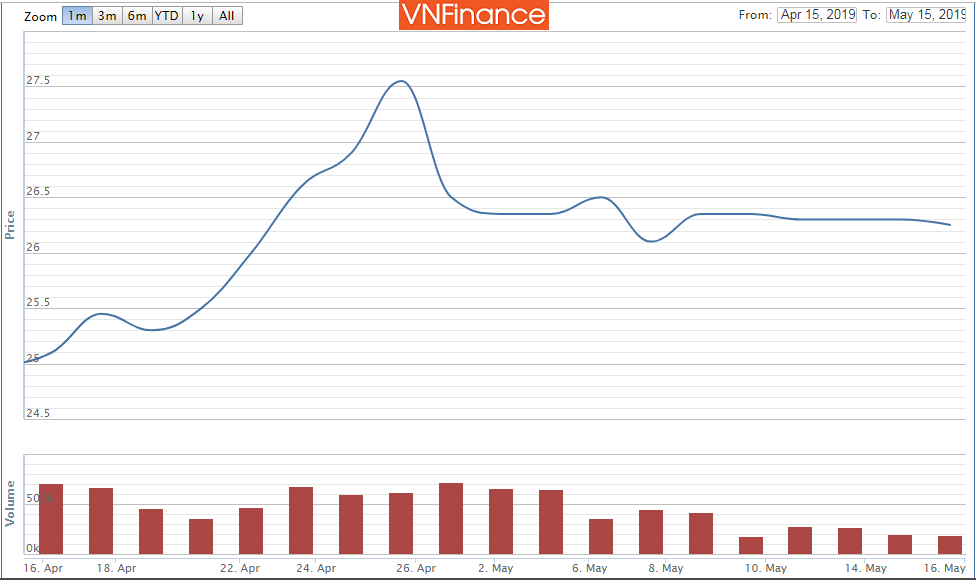 Sau đợt tăng giá vào nửa cuối tháng 4 từ mức 25.000 đồng/cp lên trên 27.000 đồng/cp tới nay giá cổ phiếu HPX đang đi ngang quanh vùng giá 26.000 đồng/cp.