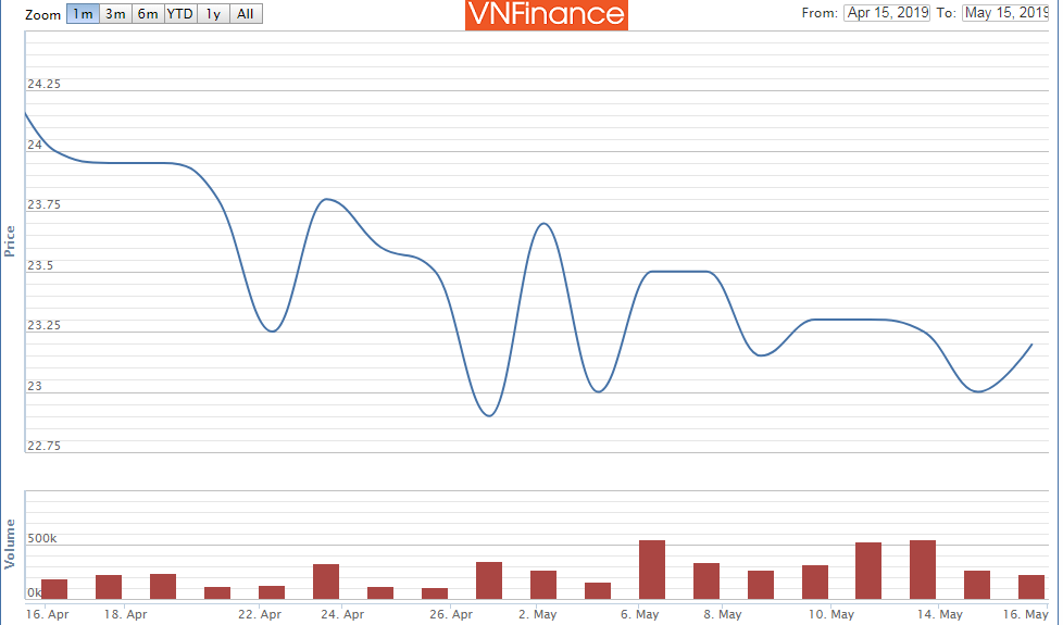 Một tháng nay, giá cổ phiếu CII dao động quanh vùng 23.000 - 24.000 đồng/cp.