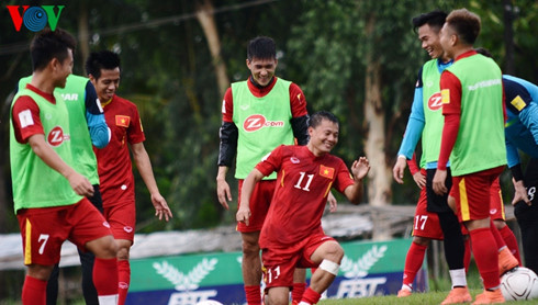 Các tuyển thủ Việt Nam thoải mái tập luyện trước thềm trận chung kết. (Ảnh: Bích Thùy)