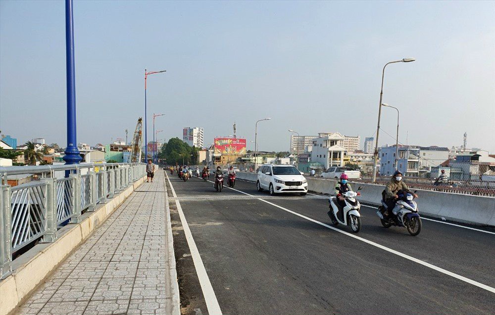 Các phương tiện lưu thông qua cầu Quang Trung 2 sau khi công trình hoàn thành đưa vào sử dụng