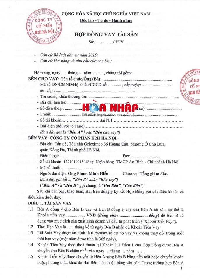 Vậy việc công ty Cổ phần H2H Hà Nội ban hành hợp đồng vay tài sản này có đúng quy định của pháp luật khi thực hiện dự án An Bình Plaza hay không?