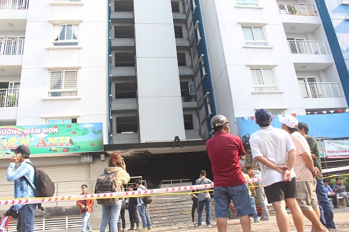 “Khi nghe mọi người kêu cháy thì tôi mới vội vã chạy ra chứ không nghe còi báo cháy kêu, khi đó mọi người chạy hoảng loạn tìm cách thoát thân. Một số người dùng rèm, chăn buộc thành dây để đu xuống đất” Anh Minh, kể lại.