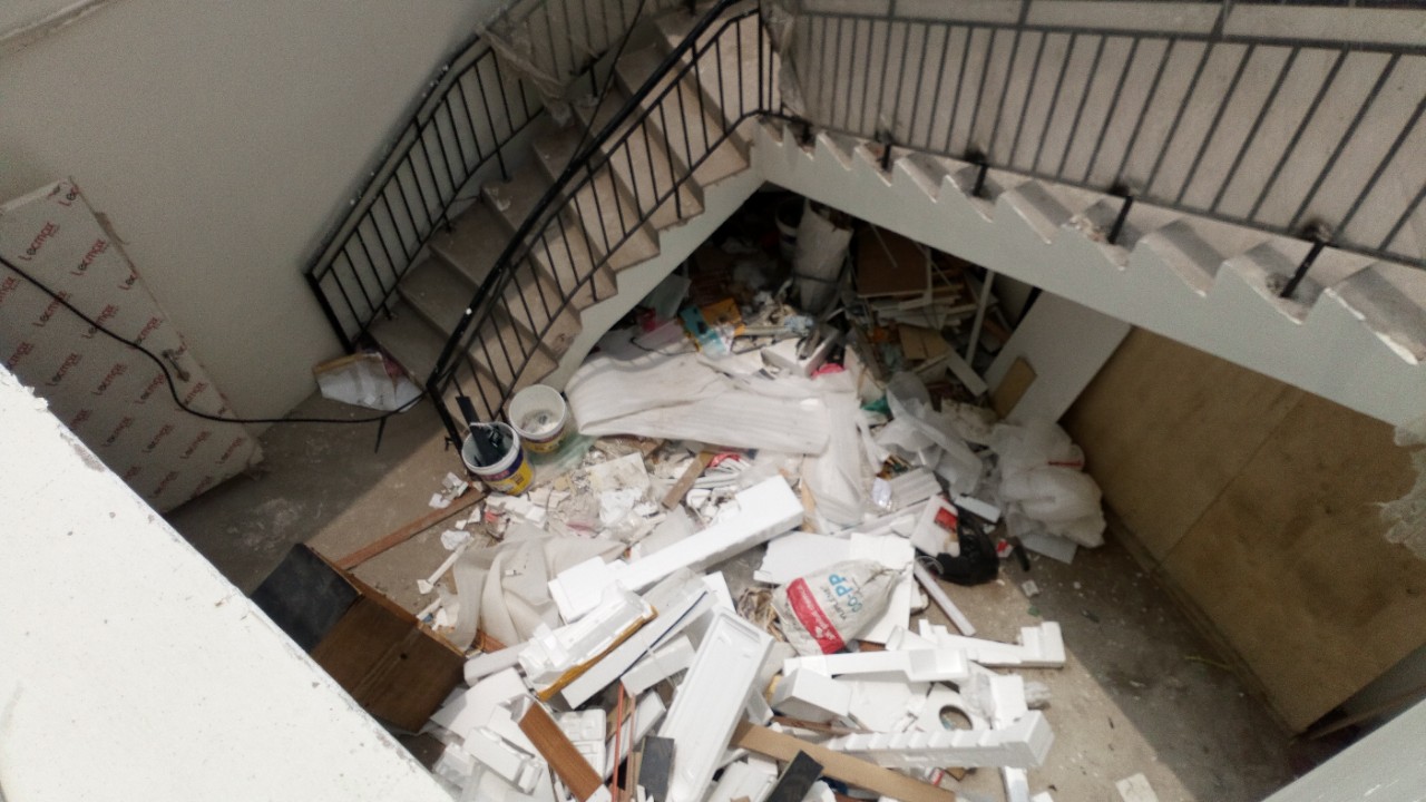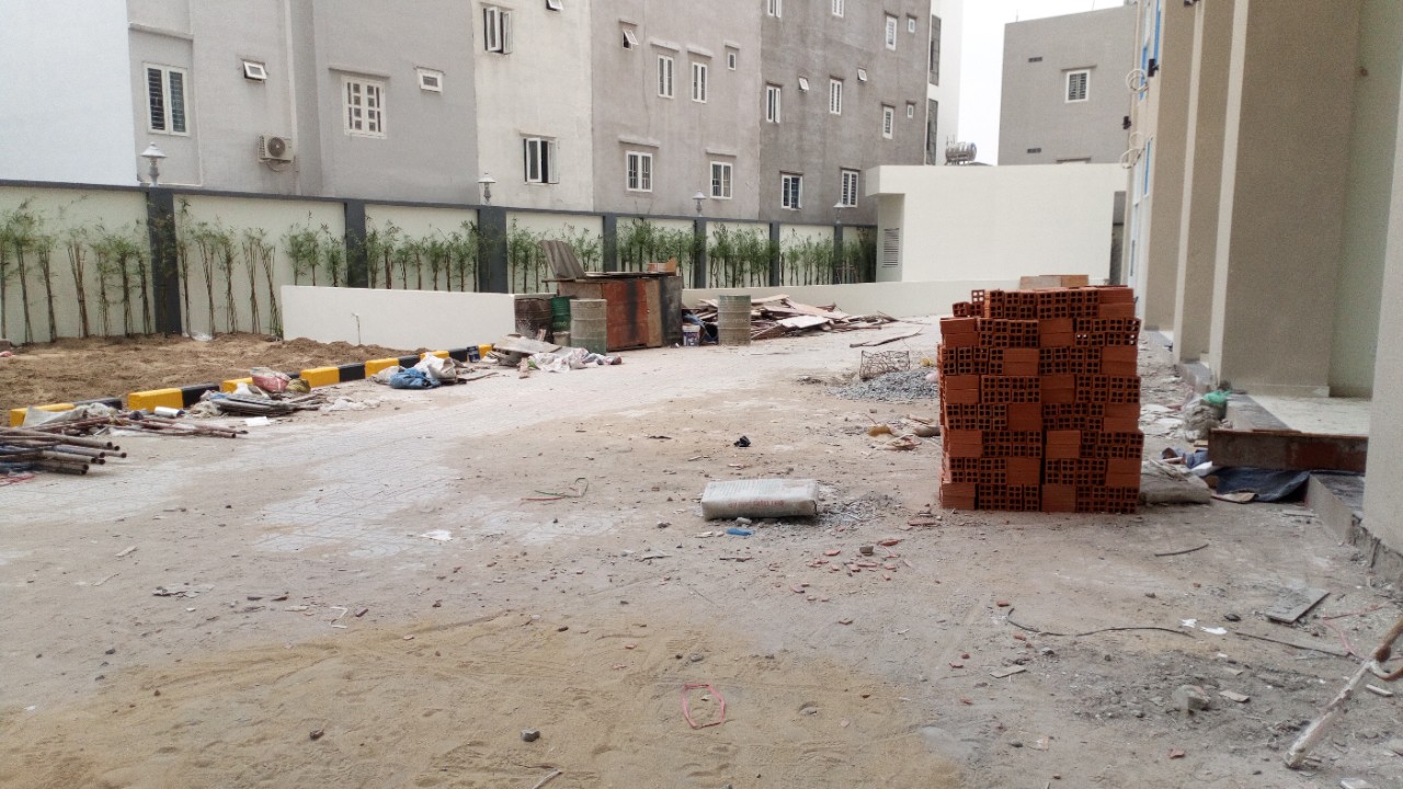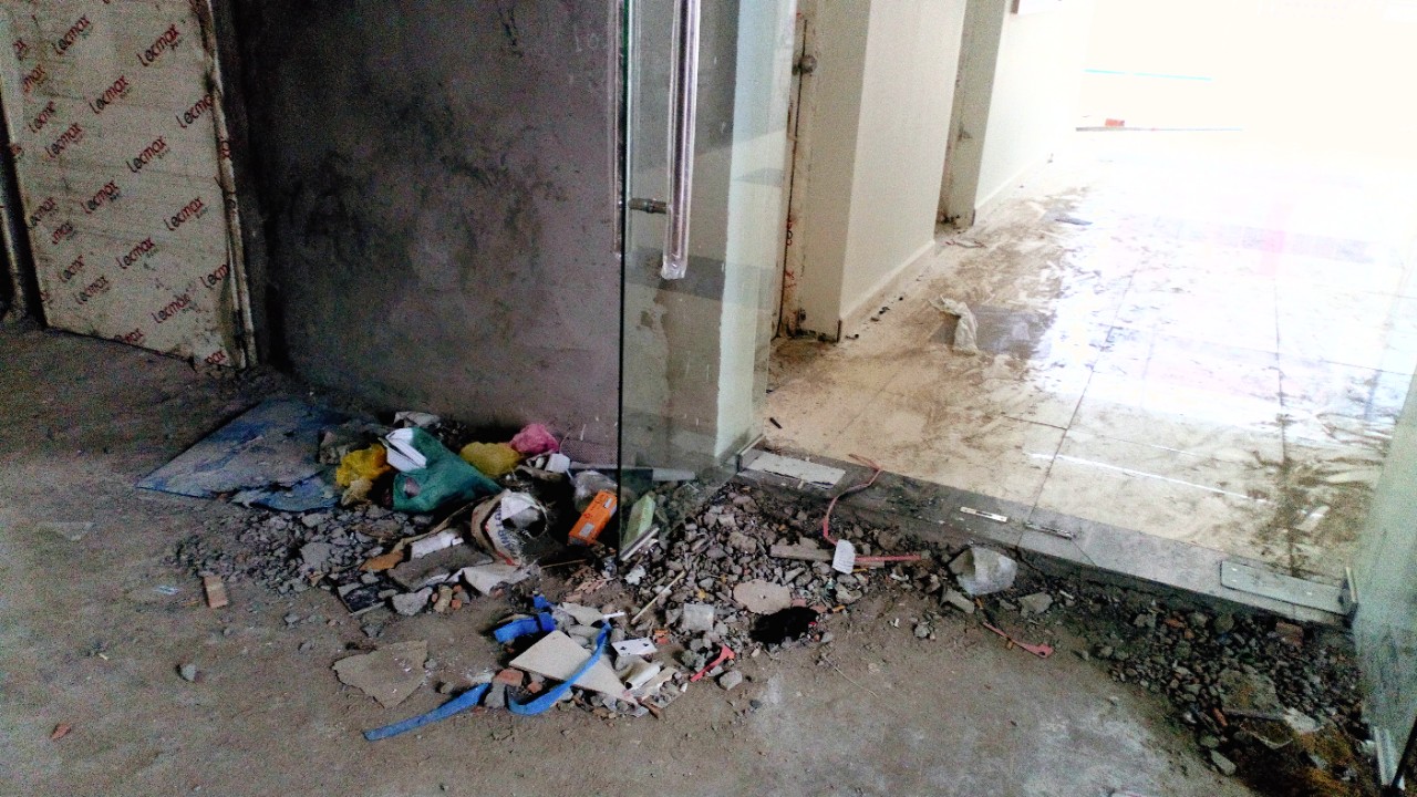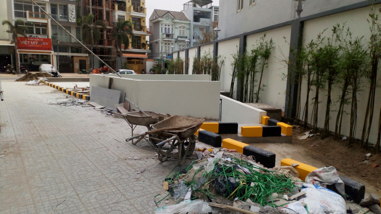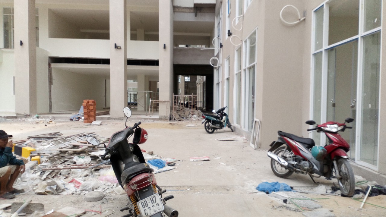 Hiện tại, bên trong dự án công nhân vẫn đang tiến hành thi công hoàn thiện nhiều hạng mục, xi măng, đất cát nằm ngổn ngang chắn hết lối đi. Nếu xảy ra trường hợp khẩn cấp thì rất khó thoát hiểm.