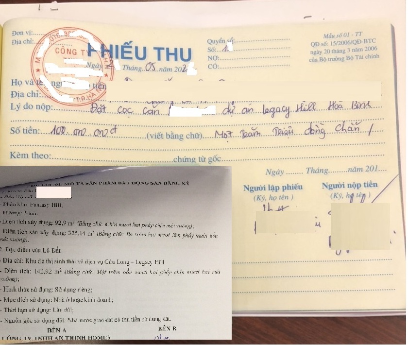 Thậm chí, theo hồ sơ Hòa Nhập có được cho thấy thông qua các sàn bất động sản, khách hàng đã đặt cọc số tiền hàng trăm triệu đồng để giữ chỗ mua Biệt thự tại dự án Legacy Hill Hòa Bình từ trước đó. Nếu Công ty TNHH MTV bất động sản Hasky Hòa Bình (thuộc tập đoàn An Thịnh) chưa triển khai các hoạt động mua bán tại dự án Legacy thì những “hợp đồng đặt cọc” do các Sàn ký với khách hàng là “vô nghĩa”, rủi ro của khách hàng là rất lớn.