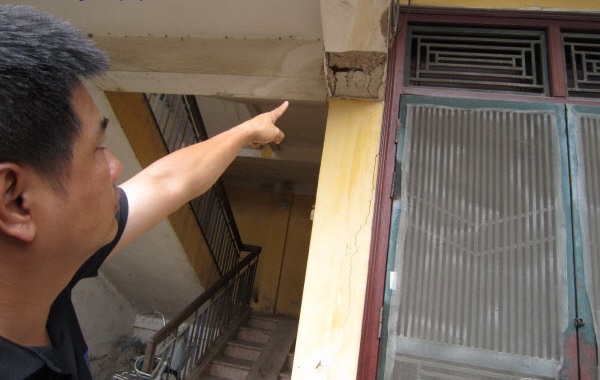Theo bà Hương, không chỉ ảnh hưởng bởi tiếng ồn mà khu tập thể 5 tầng này với hơn 40 hộ dân đang bị ảnh hưởng của hiện tượng nứt nhà, sụt lún trầm trọng. Từ nhiều tháng nay, những vết nứt xuất hiện ngày càng nhiều, rộng hơn, dài hơn… đe dọa tính mạng người dân, nhà cửa xuống cấp, có nguy cơ đổ sập bất cứ lúc nào. Không chỉ khu tập thể D9 mà hàng loạt khu tập thể khác xung quanh dự án đều xảy ra hiện tượng nứt nhà, lún sụt.