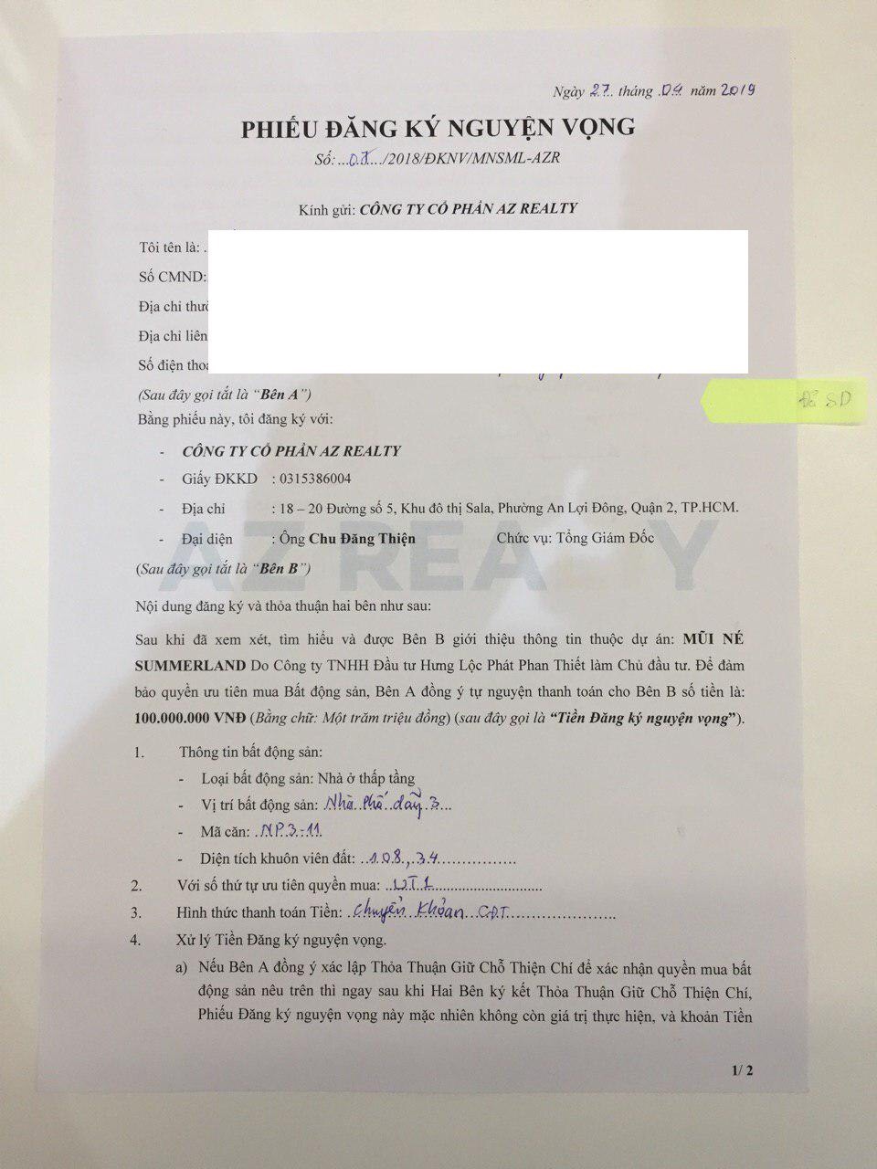 Dự án Mũi Né Summer Land Resort hiện đang được các sàn môi giới như: BBRCorp, AZ Realty… nhận giữ chỗ với mức giá 100 triệu đồng/sản phẩm.