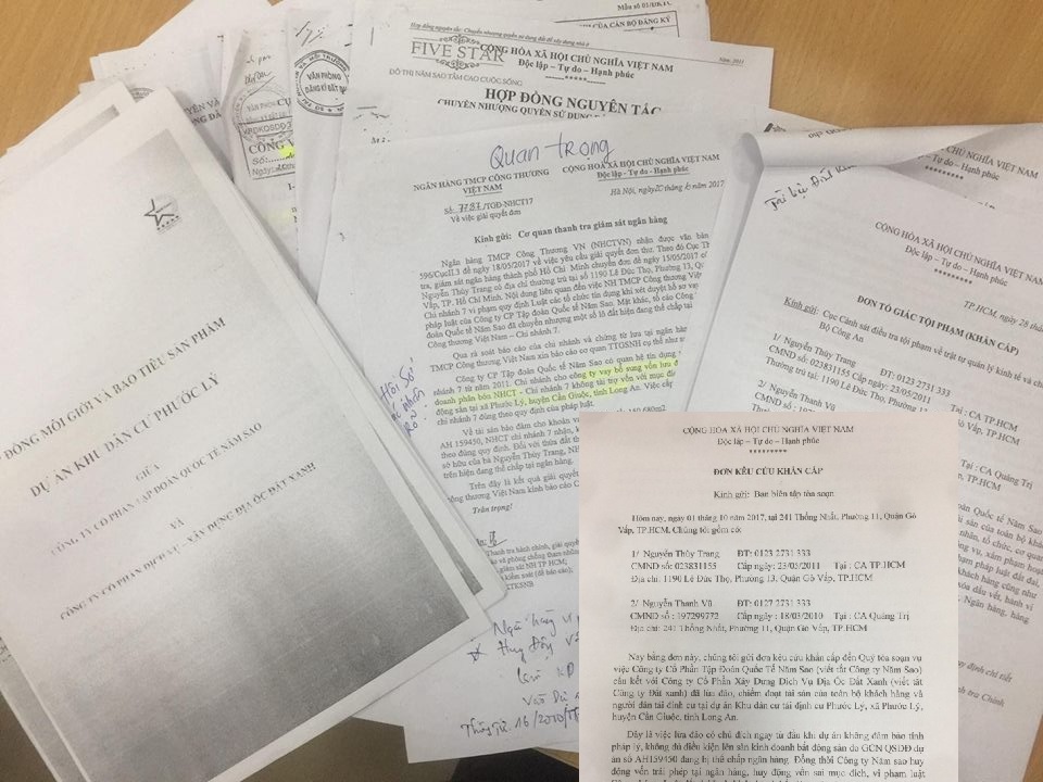 Ngoài những nội dung phản ánh về sự chậm trễ trong bàn giao sổ đỏ cho những người mua đất tại dự án của công ty Năm Sao, Bà Trang và ông Vũ còn phản ánh dự án của công ty Năm Sao tại Phước Lý, Cần Giuộc, Long An là dự án không đủ điều kiện lên sàn kinh doanh bất động sản do sổ đỏ dự án AH159450 đang bị thế chấp tại ngân hàng. Đồng thời, thư kêu cứu cũng phản ánh công ty Năm Sao huy động vốn trái phép tại ngân hàng, huy động vốn sai mục đích, vi phạm Luật công chứng, Luật đất đai, vi phạm nghi định 71/2010/NĐ-CP của Chính phủ và Thông tư 16/2010/TT-BXD của Bộ Xây dựng, nên đến nay Công ty Năm Sao vẫn chưa hoàn tất việc bàn giao sổ đỏ cho người dân tái định cư và toàn bộ khách hàng của dự án (dự án có quy mô 921 lô nền).