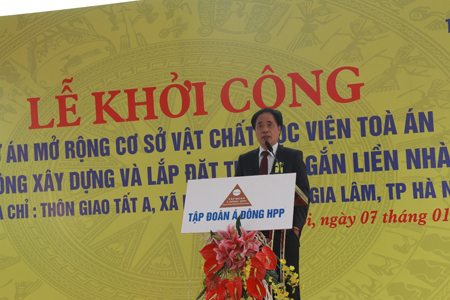 Ông Hoàng Đình Vĩnh, Tổng Giám đốc – Tập đoàn Đầu tư Xây dựng Á Đông HPP tại Lễ khởi công dự án Học viện Tòa án (Trang thông tin điện tử Học viện Tòa án)