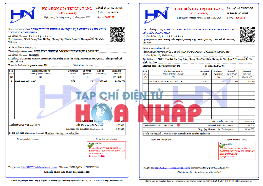 Tuy nhiên, trong quá trình đánh giá HSDT, nhận thấy hóa đơn nêu trên trùng khớp số hoá đơn, ngày, tháng, mã tra cứu với hóa đơn của máy cắt uốn thép cùng được kê khai trong HSDT, Tổ chuyên gia đã tiến hành tra cứu và xác nhận, hóa đơn GTGT số 0001161 chỉ mua máy cắt uốn thép, không phải mua máy toàn đạc và máy mài như Nhà thầu kê khai.