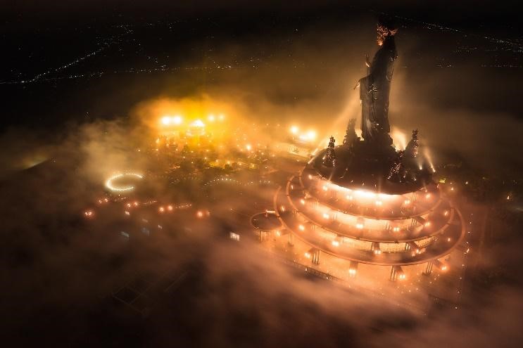 Quần thể tâm linh trên núi Bà lung linh khi đêm về. Ảnh: Hải An