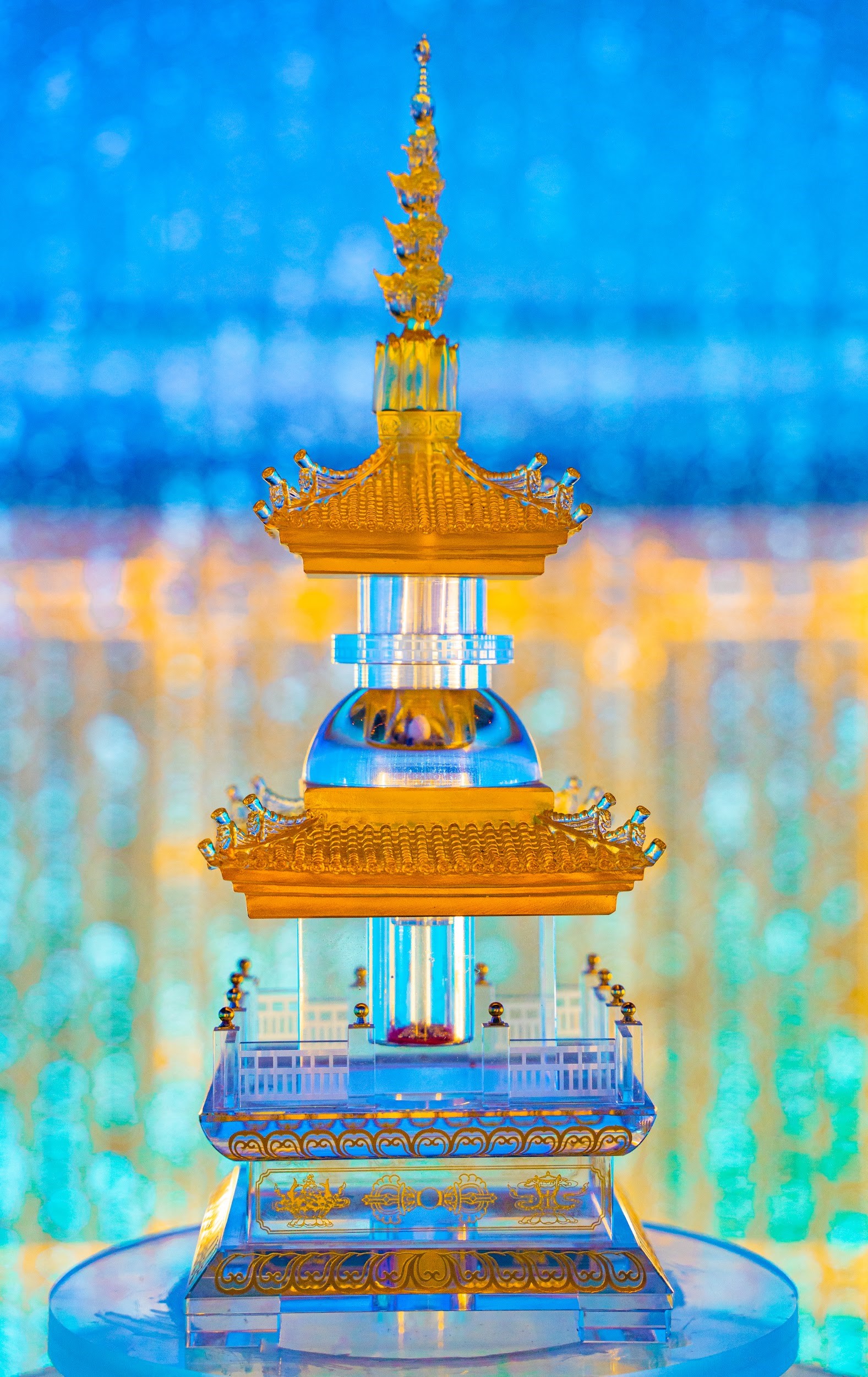 Tại khu vực đỉnh núi, ngọc xá lợi của Đức Phật Thích Ca Mâu Ni được an tọa trang trọng trong bảo tháp lưu ly hai tầng, giữa không gian xá lợi tôn nghiêm tại trung tâm triển lãm Phật giáo dưới chân tượng Phật Bà Tây Bổ Đà Sơn.