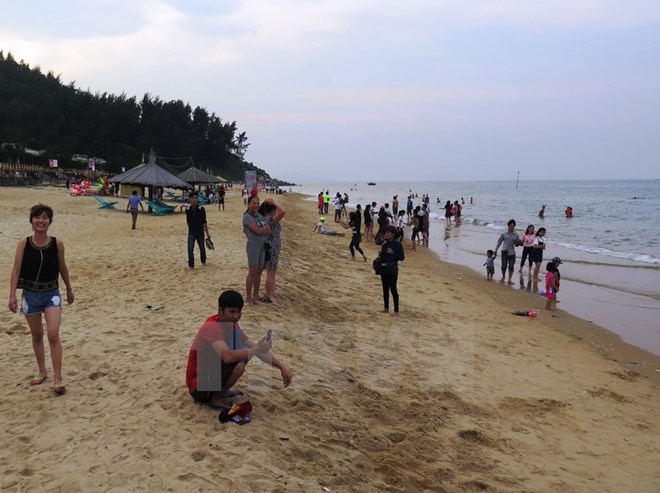 Du khách đến tắm biển tại Thiên Cầm. (Ảnh: Phan Quân/TTXVN)