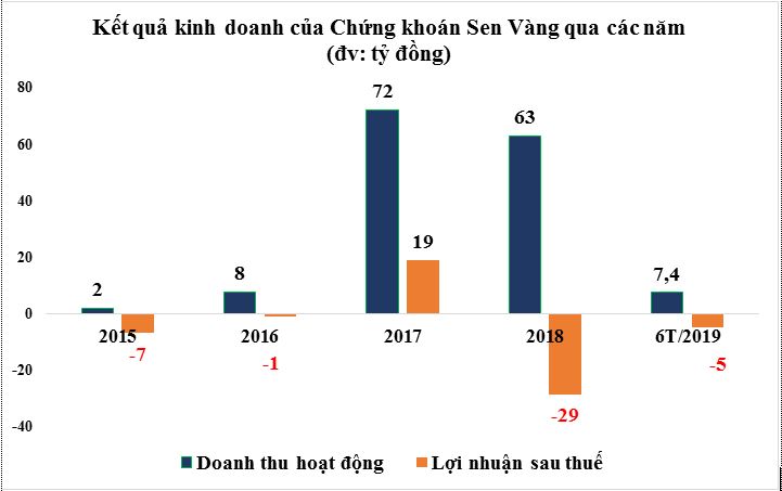 Theo số liệu tổng hợp của người viết thì tình hình kinh doanh của Chứng khoán Sen Vàng rất bết bát. Giai đoạn 2015 đến nay Công ty liên tục thua lỗ, duy nhất năm 2017 lãi 19 tỷ đồng nhưng năm 2018 ghi nhận khoản lỗ lên tới 29 tỷ đồng. 6 tháng đầu năm thu không đủ chi chưa kể lỗ đánh giá lại các tài sản khiến Công ty tiếp tục lỗ thêm 5 tỷ đồng.