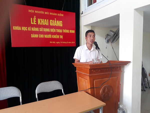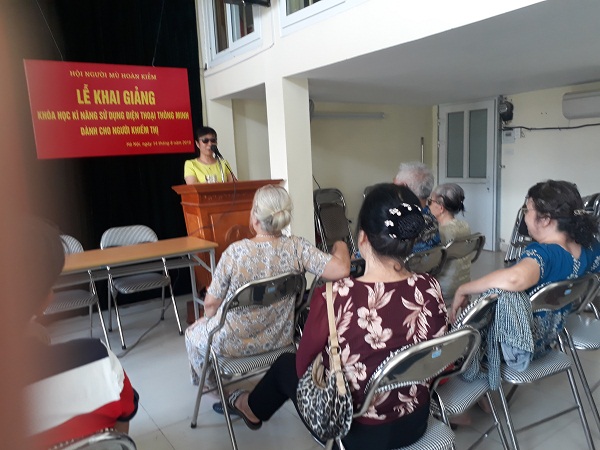 Tham gia khóa học có 10 người khiếm thị là hội viên đang sinh hoạt tại hội người mù Hoàn Kiếm. Trong 02 tháng với thời lượng 16 buổi, học viên sẽ được hướng dẫn những kĩ năng cơ bản để có thể sử dụng được điện thoại thông minh như: Làm quen với công cụ hỗ trợ giọng nói cho người khiếm thị, nhận và thực hiện cuộc gọi, nhắn tin, sử dụng mạng xã hội như facebook, zalo, đặt xe công nghệ.