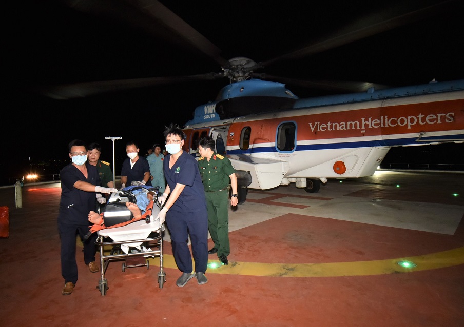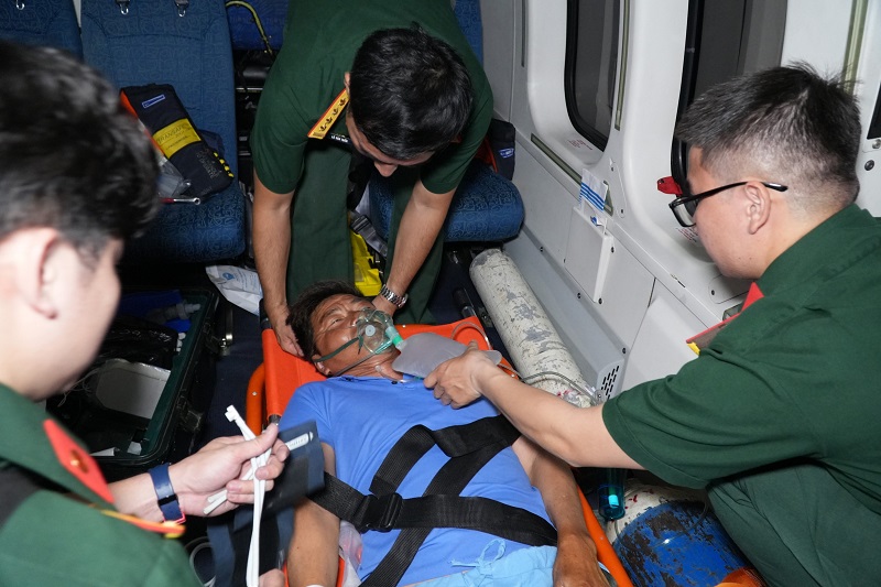 Bệnh nhân được tổ cấp cứu hỗ trợ tích cực, chăm sóc sức khỏe trong quá trình di chuyển về đất liền.