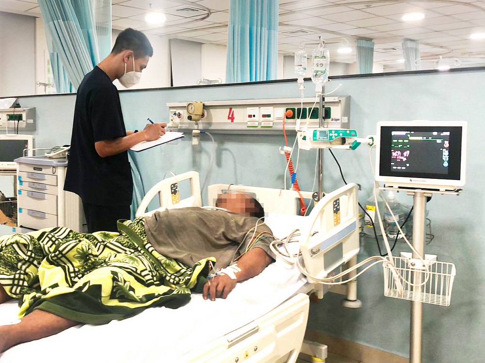 Trước đó, khoảng 20h ngày 12/12, khi đang khai thác hải sản, ngư dân Trần Hửu bị đau đầu, méo mặt, yếu và mất cảm giác nửa người trái, huyết áp cao. Ngư dân Hửu được tàu cá BĐ - 97573 TS đưa vào Bệnh xá đảo Sinh Tồn cấp cứu. Tại đây các y, bác sĩ đã tiến hành cấp cứu ban đầu. Qua hội chuẩn trực tuyến với Bệnh viện Quân y 175 và các đơn vị liên quan, chẩn đoán bệnh nhân bị đột quỵ não, có dấu hiệu phù não tiến triển.