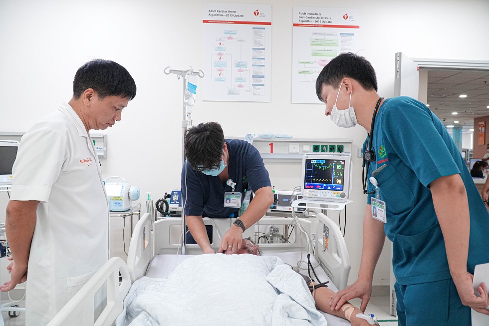 Sau khi hạ cánh an toàn, các bác sĩ của bệnh viện nhanh chóng đưa bệnh nhân cấp cứu, chẩn đoán và lên phác đồ điều trị.