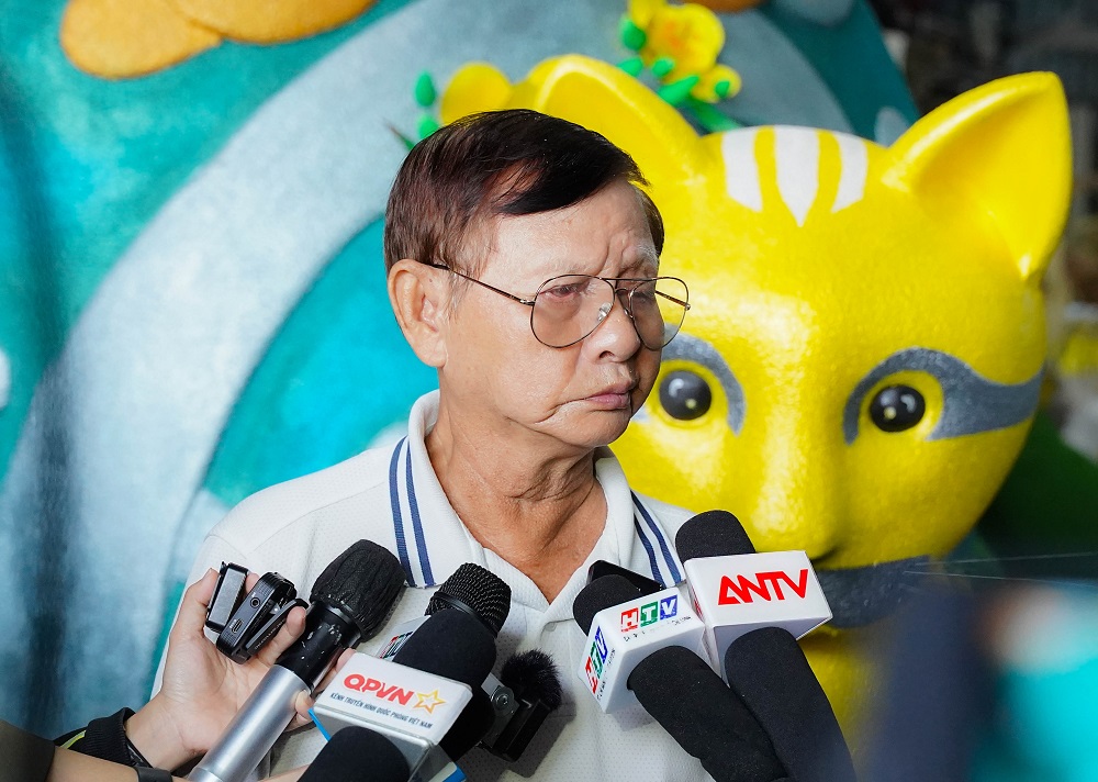Nghệ nhân Văn Tòng - Giám đốc Công ty TNHH Sản xuất Mỹ thuật Văn Tòng chia sẻ quá trình đơn vị thi công các linh vật.