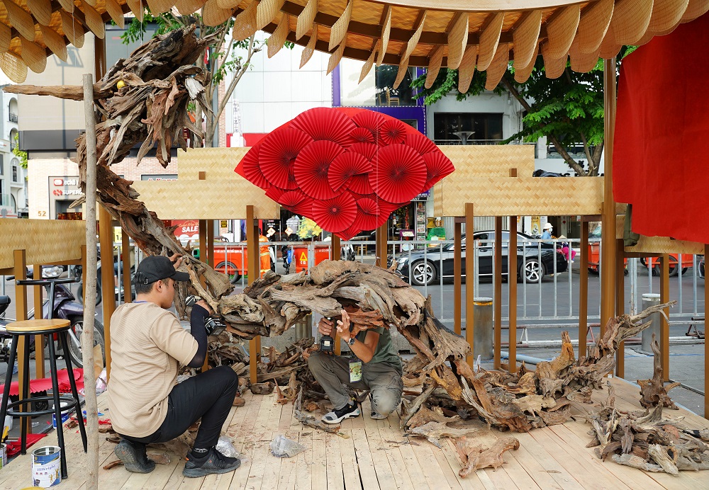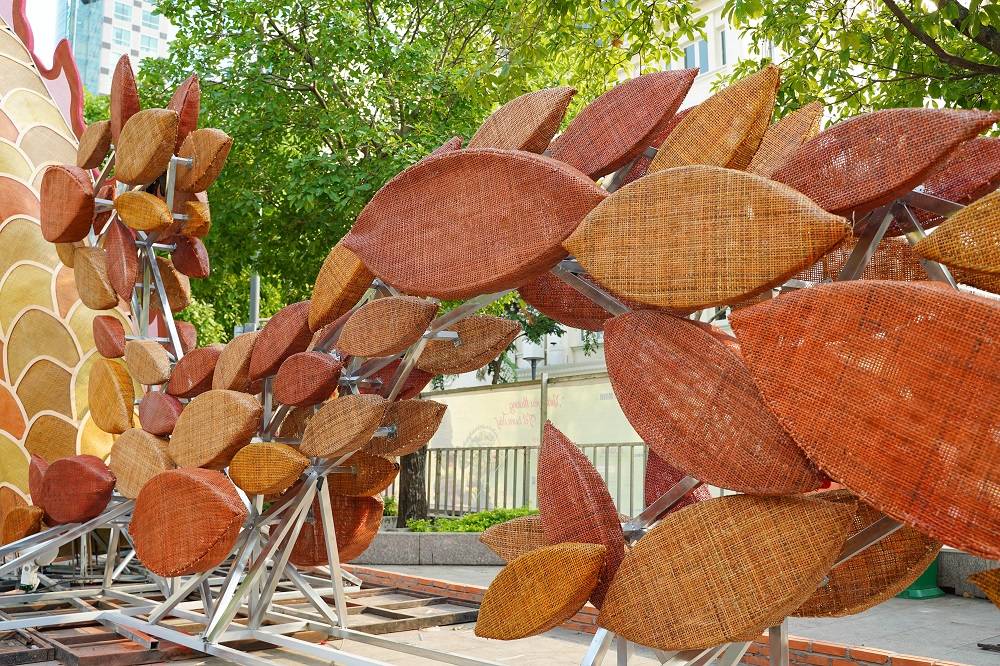 Bên cạnh linh vật Rồng đặc trưng, nhiều đại cảnh, tiểu cảnh của đường hoa cũng đang được gấp rút hoàn thiện.