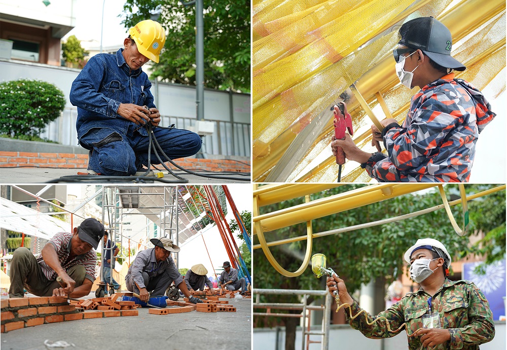 Dù công đoạn đơn giản hay phức tạp, công trình lớn hay nhỏ, từng đội ngũ, công nhân thi công vẫn luôn làm việc miệt mài, tỷ mỹ và không ngại thời gian với mục tiêu tạo ra sản phẩm hoàn chỉnh nhất, kịp phục vụ người dân đến đường hoa.