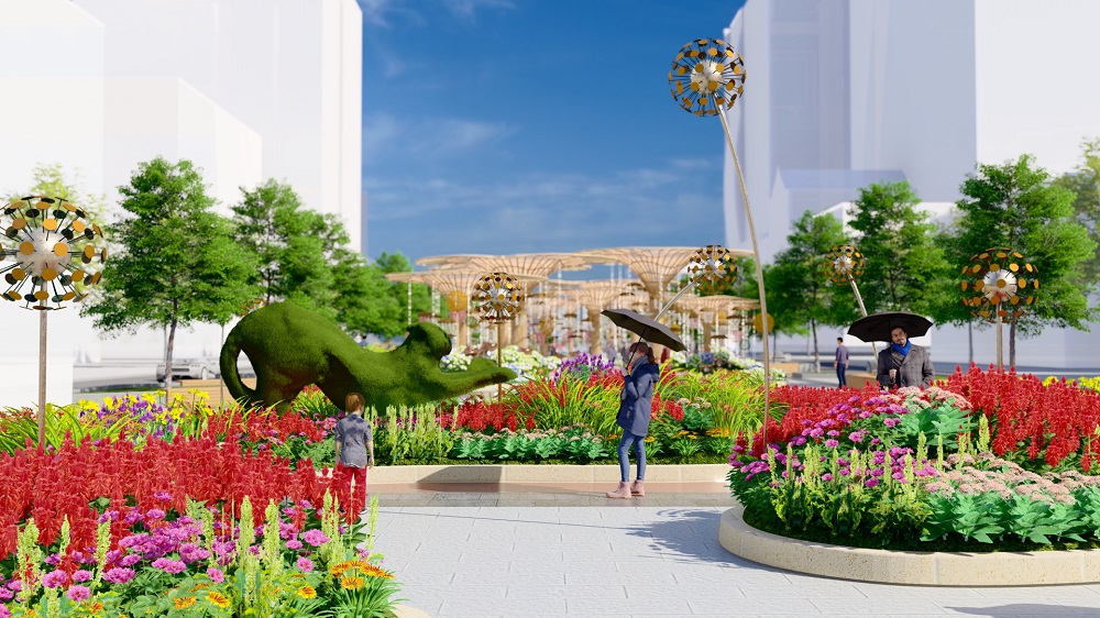 Trên diện tích hơn 240 m2 sau lưng cổng chào Đường hoa 2023, khách thưởng ngoạn sẽ có dịp chiêm ngưỡng lại toàn bộ 20 linh vật đã từng xuất hiện tại vị trí cổng chào Đường hoa trong hai thập kỷ