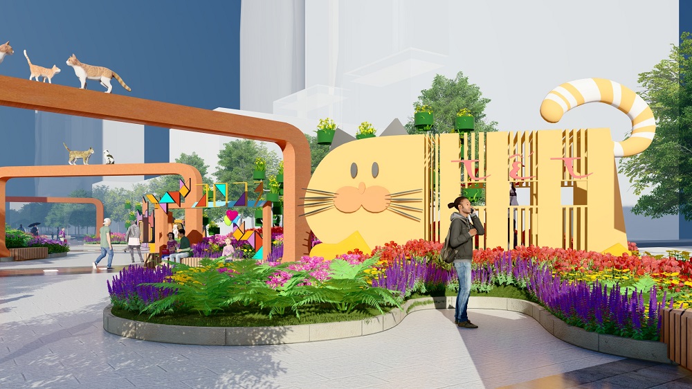 Tại Đường hoa Tết Quý Mão, 70 hình ảnh linh vật mèo được cách điệu thể hiện đa dạng về kích thước (thấp nhất 0,6 m, cao nhất 5,5 m), đa dạng về chất liệu từ mút xốp, sắt, sơn mỹ thuật, phủ mùn cưa, giả đất nung đến ốp hoa tươi… Dưới nhiều sắc thái, biểu cảm khác nhau từ dễ thương, nghiêm túc, tinh nghịch, lười biếng đến tò mò, linh vật Đường hoa năm nay sẽ không gây nhàm chán cho bất kỳ khách tham quan nào đi trọn hơn 600 m Đường hoa.