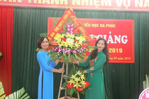 Đ/c Đỗ Thị Thanh Thủy - PCT UBND quận Dương Kinh Tặng hoa tại trường Tiểu học Đa Phúc