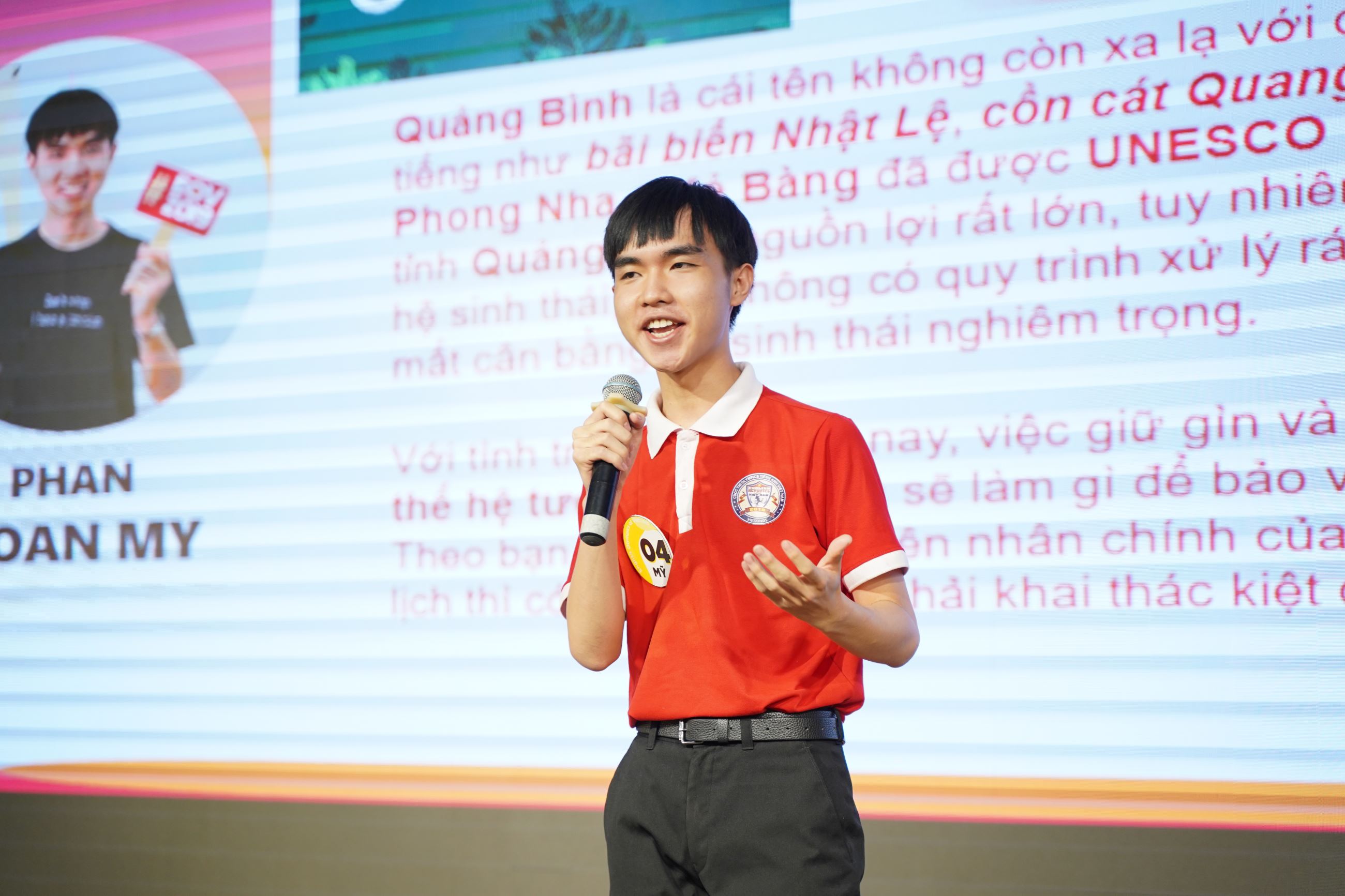 Trong phần trình bày cá nhân tại phần thi “Việt Nam một điểm đến”, Phan Hoàn Mỹ đã chọn chủ đề về bảo vệ hệ sinh thái tự nhiên ở các địa điểm du lịch tại Quảng Bình. Với khả năng lập luận sắc bén và mạnh mẽ, Phan Hoàn Mỹ đã làm tất cả khán giá phải thán phục, đặc biệt khi khéo léo trả lời tất cả các câu hỏi của Ban Giám khảo Cuộc thi.