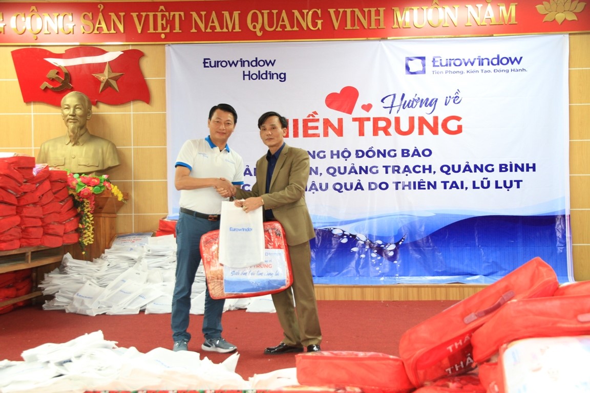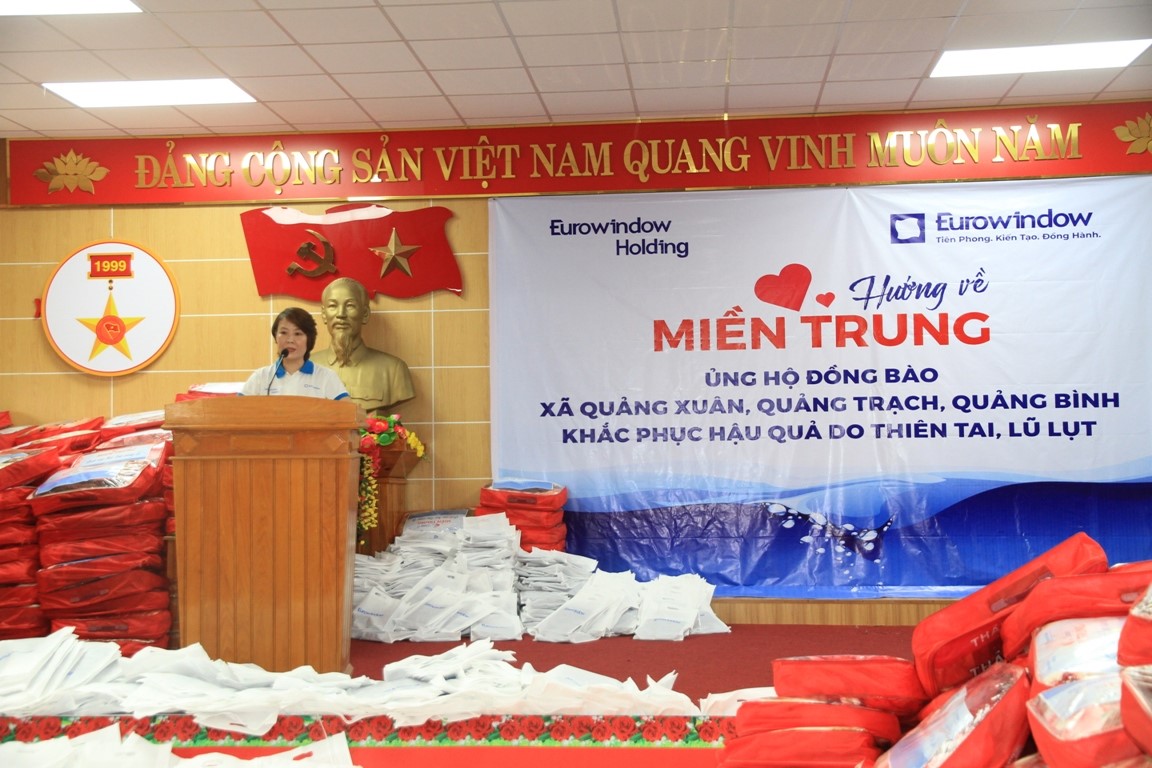 Ngày 12/11, tại UBND xã Quảng Xuân (huyện Quảng Trạch, Quảng Bình), đại diện Công ty Cổ phần Eurowindow Holding đã trao tặng 968 suất quà đến bà con vùng lũ ở 4 thôn Xuân Hòa, Xuân Kiều, Thanh Lương và Thanh Bình. Mỗi suất quà gồm tiền mặt cùng các nhu yếu phẩm cần thiết như chăn tuyết, áo mưa,…
