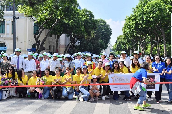 | Hàng trăm người khiếm thị cùng các tnv hào hứng tham gia chương trình đi bộ cùng cây gậy trắng. |