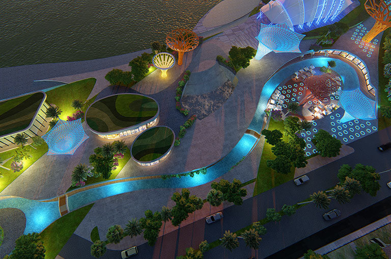Đây là một công trình trung tâm theo đúng nghĩa của một đô thị văn minh, bền vững cả về kinh tế, văn hóa và tự nhiên với phân khu chức năng hợp lý, tổ chức giao thông rõ ràng và liên hoàn cho các tình huống khác nhau. Khối đế hài hòa và bổ trợ cho cơ cấu đô thị đặc trưng của khu vực lân cận, đồng thời nâng cao giá trị khu vực bằng những chức năng khác và bằng việc tổ chức không gian cảnh quan chau chuốt và hiện đại. Khai thác triệt để thế mạnh của khu đất giáp biển với tạo hình 1 tháp mạnh mẽ. Hình khối kiến trúc được thiết kế hết sức độc đáo và ấn tượng để tạo các điểm nhấn cho toàn thành phố, tinh tế và thanh thoát bền vững theo thời gian.