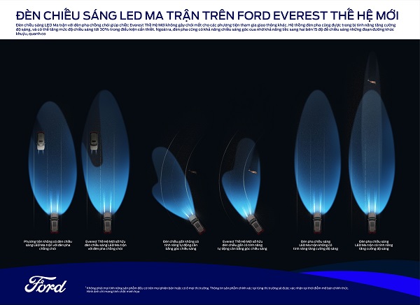 Ngoài ra, hệ thống đèn chiếu sáng LED Ma Trận với đèn pha chống chói trên Everest Thế Hệ Mới còn được trang bị tính năng tăng cường độ sáng, sử dụng một cụm đèn LED để cung cấp thêm 30% ánh sáng so với đèn chiếu sáng LED Ma trận đơn thuần.