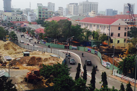 Công trình hầm chui qua đầu cầu sông Hàn đang gấp rút thi công. Ảnh: VGP/Lưu Hương