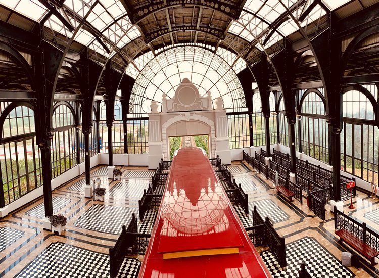 Mái vòm, trần cao và rất nhiều chi tiết trang trí hoa sắt mô phỏng đường ray, bánh lái, huy hiệu ngành đường sắt… nhà ga tàu hỏa leo núi Mường Hoa cho du khách cái cảm giác được trở về với những thập niên trước, lạc bước tới nước Pháp, trên một con tàu cổ. Chính không gian tuyệt đẹp này cùng với toa tàu đỏ sang trọng hệt như bước ra từ một bộ phim châu Âu cổ đã đưa Ga tàu hỏa leo núi Mường Hoa lọt mắt xanh “ông lớn” trong ngành thời trang Louis Vuitton. Chỉ vừa mới tháng trước thôi, dân sành điệu đã được một phen kinh ngạc trước vẻ đẹp lộng lẫy của Nhà ga này, trong bộ ảnh thời trang quảng bá cho chiến dịch “Art of Travel” của nhà Louis Vuitton.