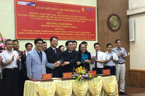 Hội Hữu nghị Việt Nam Hàn Quốc tỉnh Thái Nguyên (VIKOFAT) và Tổ chức Korea Food for the Hungry International (KFHI) dưới sự hỗ trợ của Samsung Việt Nam tổ chức Lễ kí kết Biên bản ghi nhớ về việc thành lập Trung tâm Hợp tác Việt Hàn tỉnh Thái Nguyên (VCC).