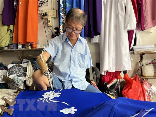 Nghe ông tâm sự, rồi nhìn ông chậm rãi thao tác những nét vẽ với hai ngón tay giả trên những tà áo dài, mọi người sẽ hình dung đến cây xương rồng: bình tĩnh, vững chãi vượt qua bão táp cuộc đời. Ông kể về những biến cố, những nỗ lực cứ “nhẹ tựa lông hồng” nhưng mọi người đều hiểu, hành trình ấy đầy mồ hôi và nước mắt.