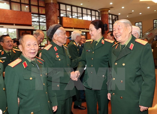 | Các đại biểu cán bộ cao cấp quân đội nghỉ hưu trong cuộc gặp mặt ngày 11/1. (Ảnh: Trọng Đức/TTXVN) |