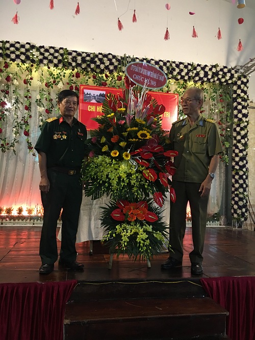 Đ/c Nguyễn Tuấn Long - nguyên Bí thư Đảng ủy, nguyên Phó Giám đốc Công ty xây dựng và phát triển nhà số 7 tặng hoa cho Chi hội CSTC Quảng Trị quận HBT tại buổi gặp mặt
